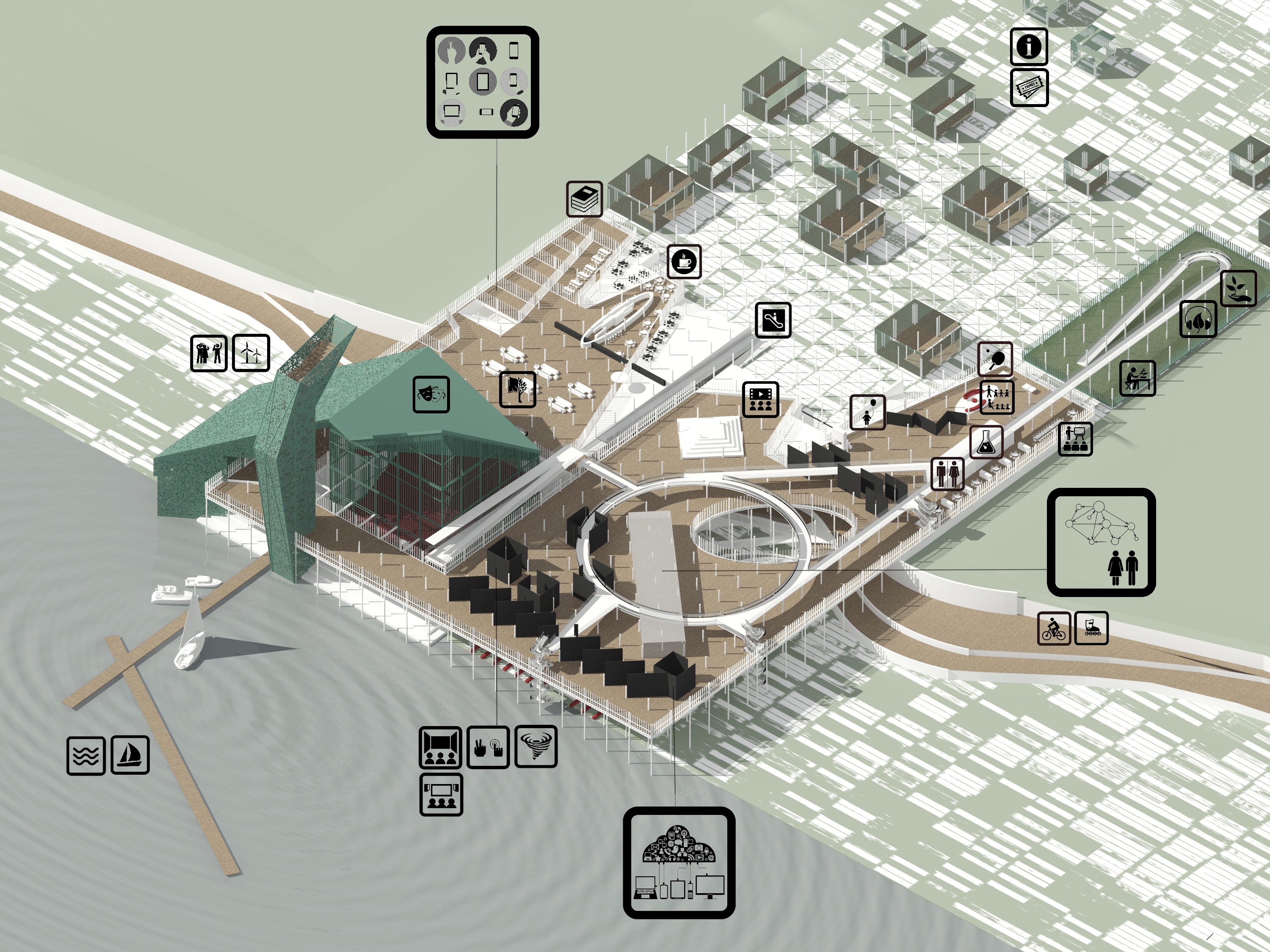 По заказу крупной промышленной компании нами был разработан базовый концепт музейно-досугового центра, включающий в себя зоны сменяемых инсталляций, выставочное пространство, многофункциональный зал, учебный и детский центры, теплицу, уличный научный парк и общественные помещения.